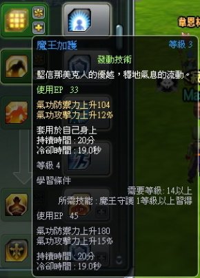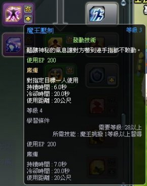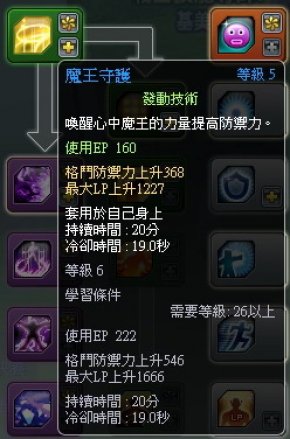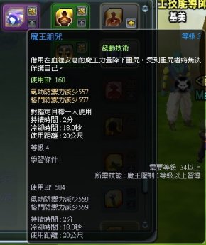 AP技能:持续增加2.8s、减少冷却8s。魔王诅咒:减少双重防御力。魔界战士可考虑点四级。魔导战士建议点三级Pvp。