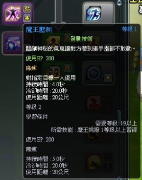 二级为满级。魔王压制:麻痹对手,使其无法动弹。Pvp取向之魔导战士必点。